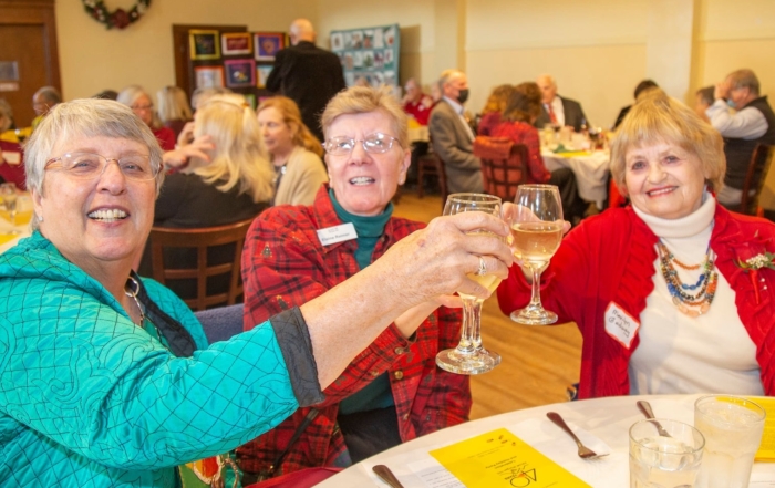 --- 2022 at Jan Conrey’s home Top left to right: Karen Parks, Pat Toombs, Jan Conrey Middle: Donna Dicker, Joan Ensign Chair